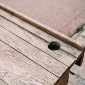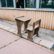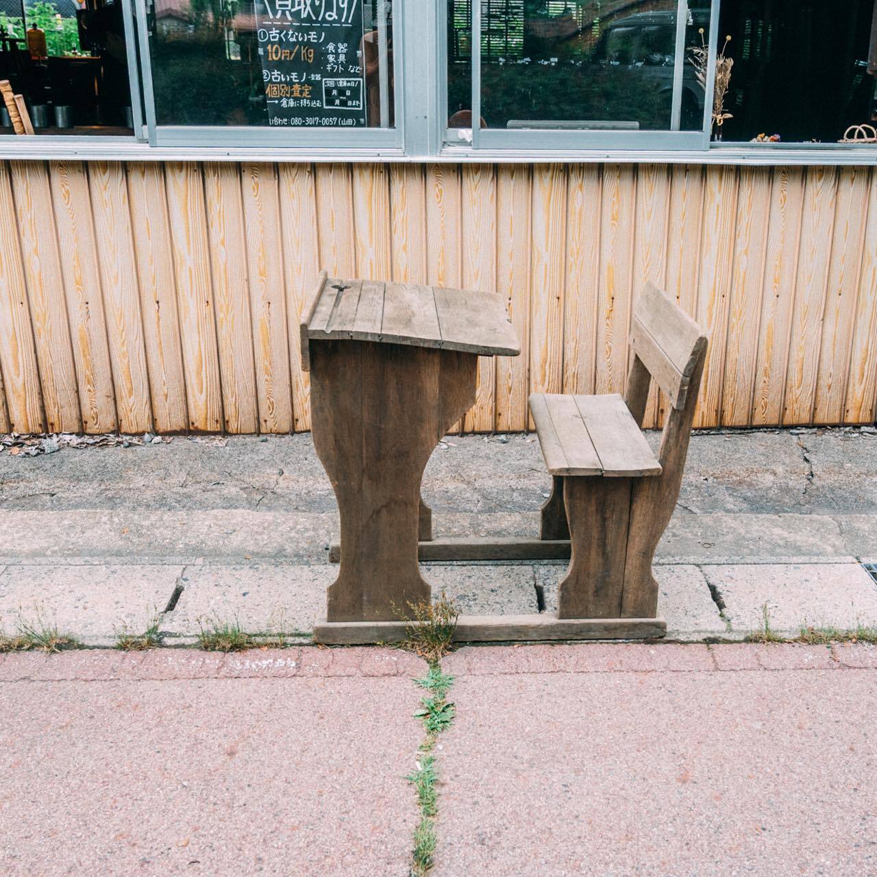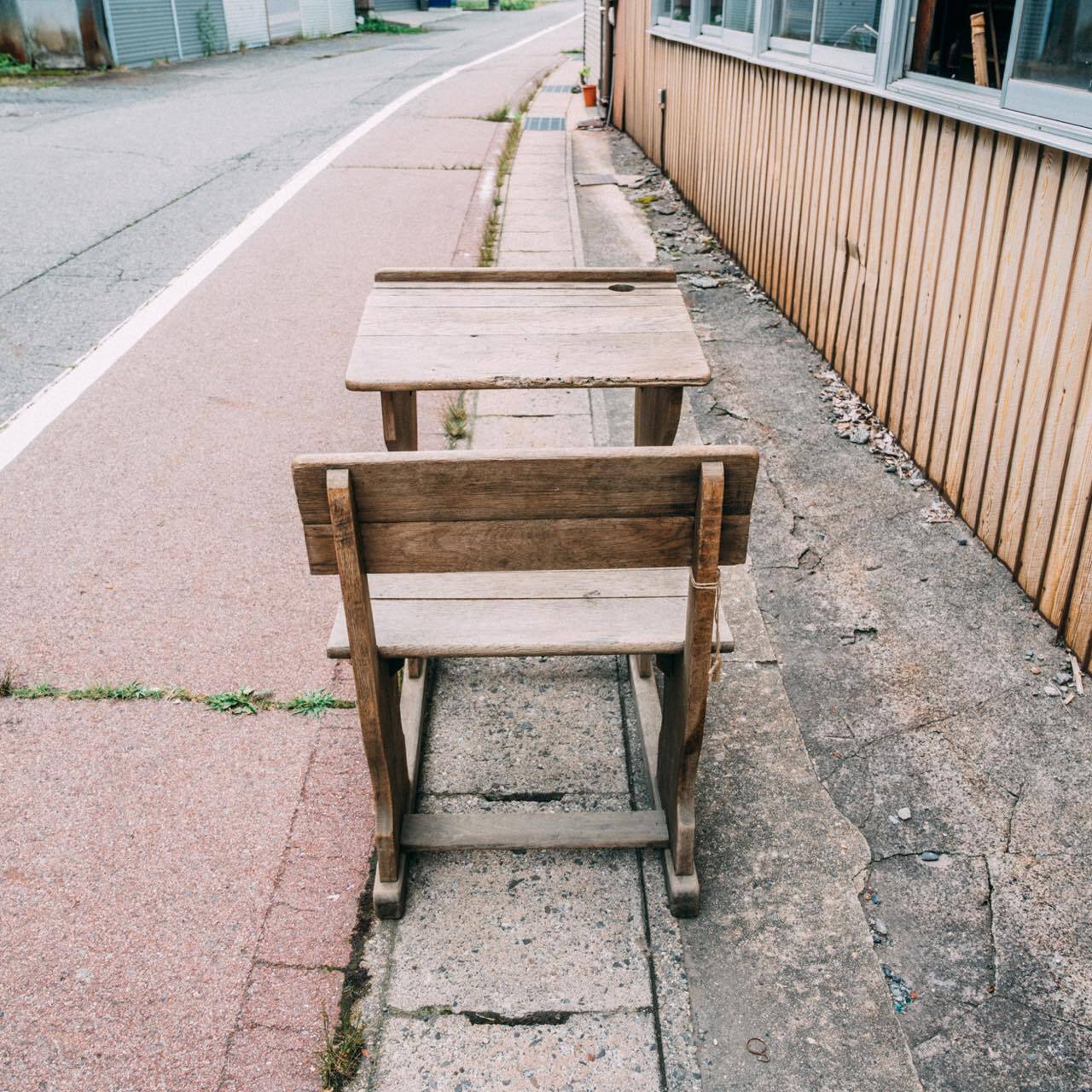 イギリスの小学校で実際に使われていた、木製の一体型スクールデスクです。