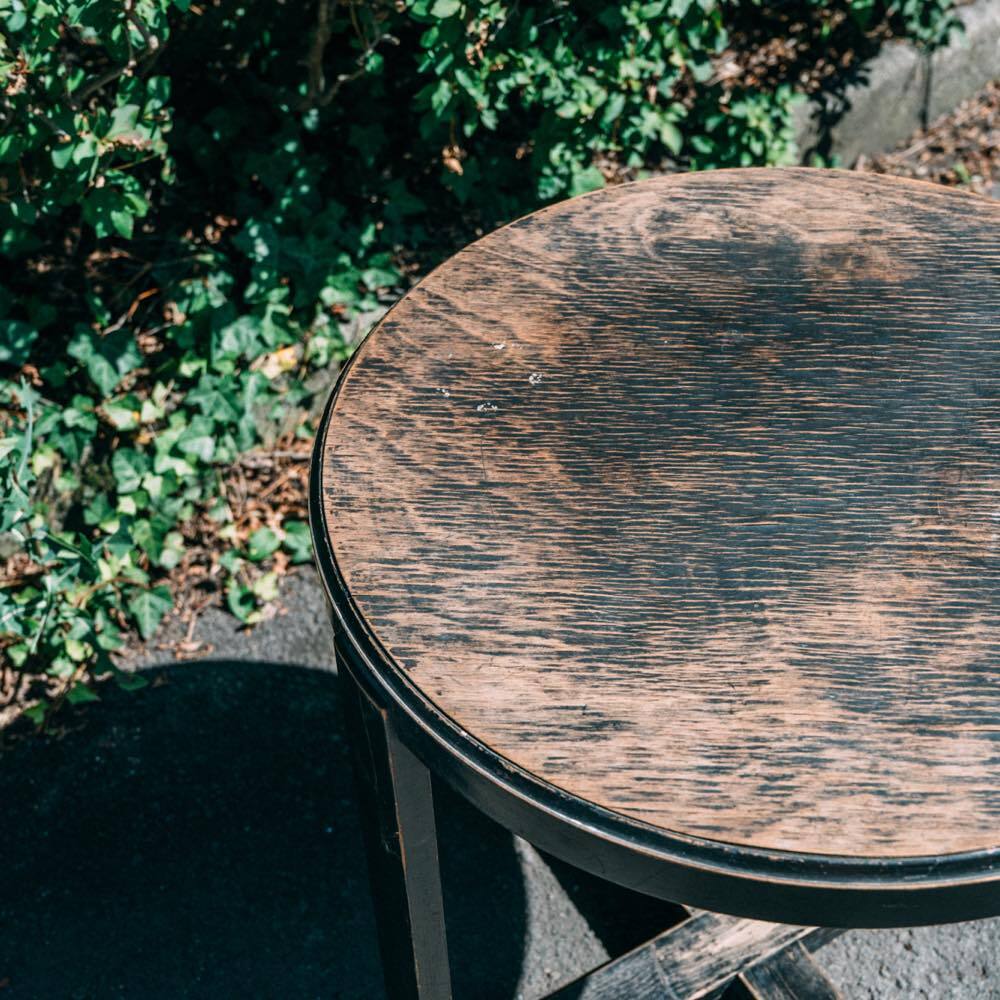 風格すごくない?!モダンな昭和初期の黒家具丸テーブル ‖ B品のため格安